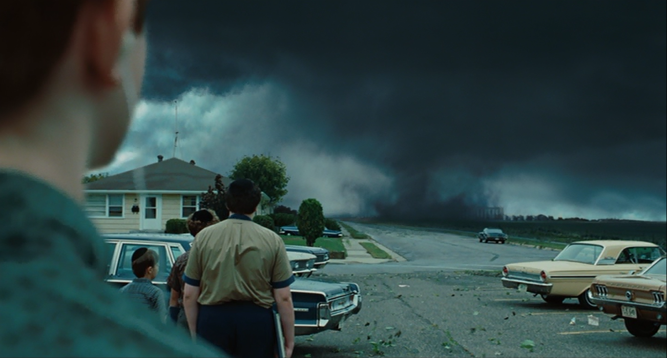 In a simultaneous scene, Larry’s son Danny (Aaron Wolff) and his class at school are evacuated due to an oncoming tornado, and as his teacher struggles to open the school’s emergency shelter, A Serious Man ends with Danny looking on as the tornado looms.