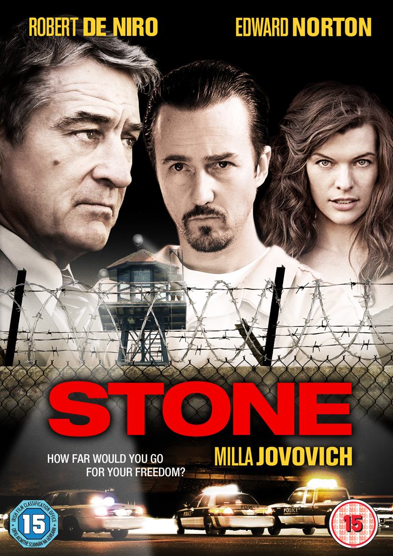 Stone has Robert De Niro’s parole officer nearing a welcome retirement when convicted arsonist “Stone” Creeson sits down opposite him seeking, but not expecting, parole. Their initial conversation is a game of coarse oneupmanship and prejudicial sparring with no resolution, but the tone is set for these two men and the two very different worlds they inhabit to collide.