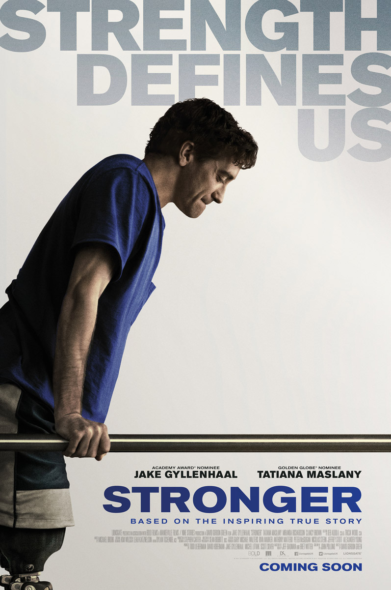 Based on the book by Jeff Bauman and Bret Witter, Stronger is directed by David Gordon Green and stars Jake Gyllenhaal, Tatiana Maslany, Miranda Richardson and Clancy Brown and produced by Todd Lieberman, David Hoberman, Jake Gyllenhaal, Michel Litvak, Scott Silver.