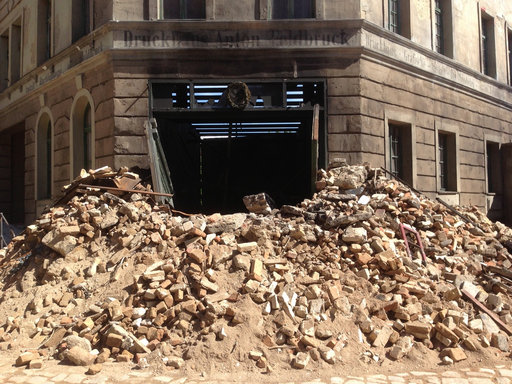 The highlight of the day for me was visiting on the the backlots at the Babelsberg and then realising that one of my favourite movies of all time, The Pianist had shot here. It wasn’t until i walked onto the set (which had just finished shooting Geofrey Rush’s new movie The Book Thief) that i realised this is where much of the movie had taken place. Remember the infamous scene where the man in the wheelchair is thrown from a top story window, or where Adrien Brody’s character Wladyslaw Szpilman hides out for much of the film, or even where the battle between the resistance and the Nazis takes place? All of those scenes were shot right here. Similarly, this is the same street where the cinema was filmed for Quentin Tarantino’s Inglorious Bastereds. It’s hard to imagine but in this is where the external cinema scenes were shot.