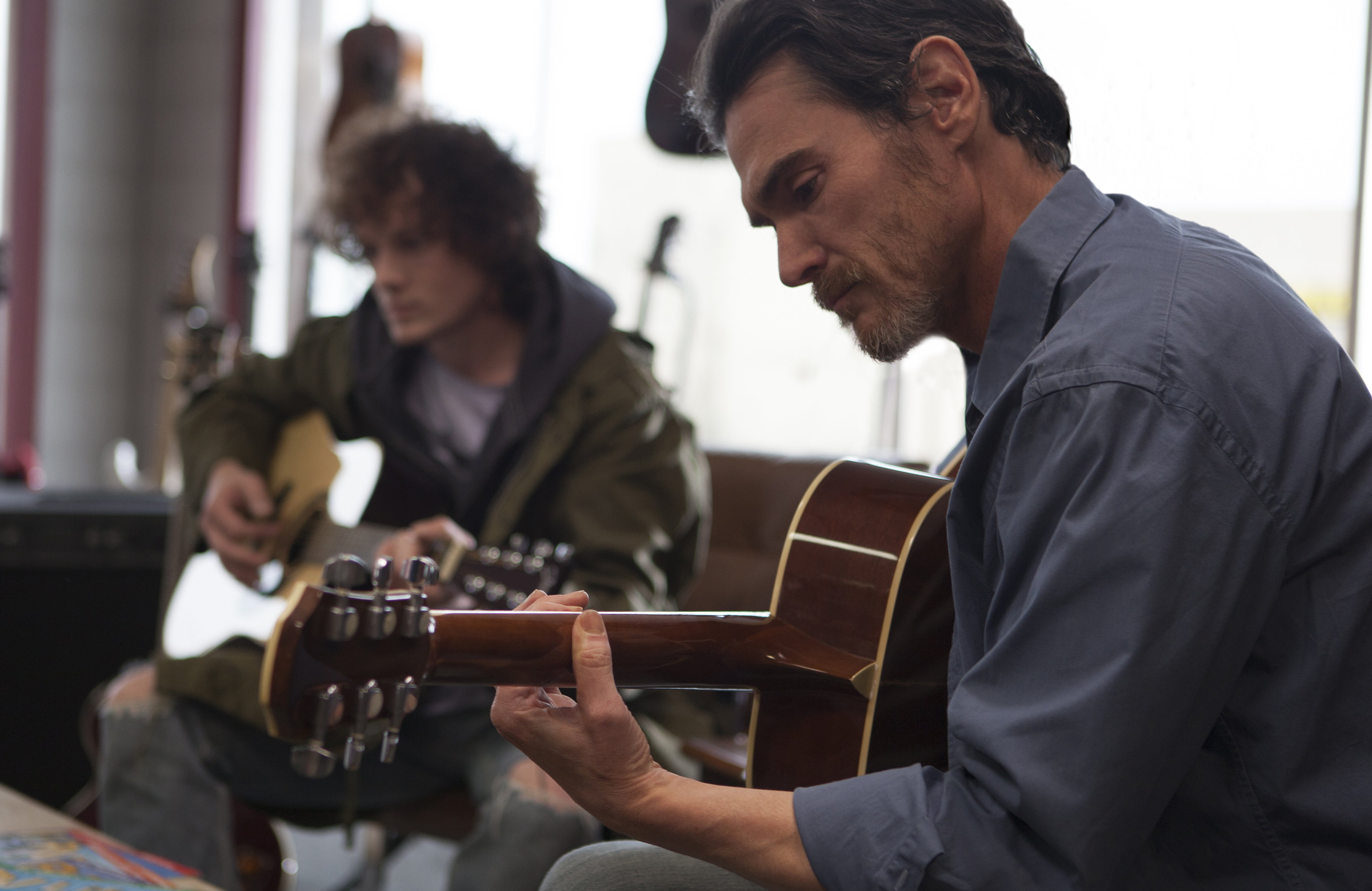 As he begins to work his way through the vast selection of songs, Sam begins to explore a side of his child that he had never before been privy too. After seeing Sam perform one of these songs at a local open mic night, a young, troubled musician named Quentin (Anton Yelchin) implores Sam to form a band, which they subsequently do.