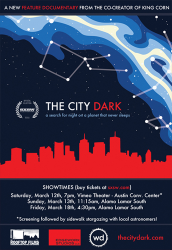 Austin, TX — THE CITY DARK, a new feature documentary by Peabody Award-winning filmmaker Ian Cheney, premieres Saturday, March 12th in the Documentary Feature Competition at the South by Southwest Film Festival. The film chronicles the disappearance of darkness, revealing the surprising impact of light pollution on human health, the environment, and our culture’s relationship to the night sky.
