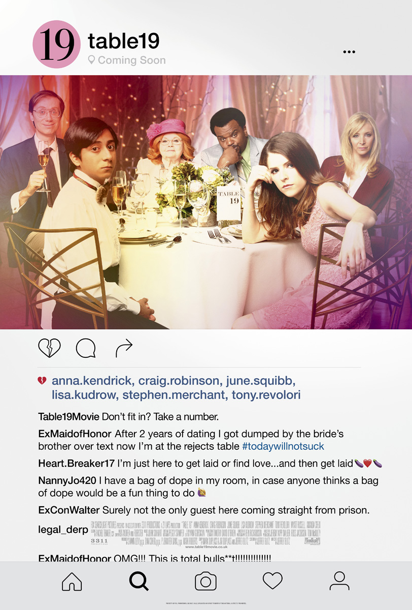 Almost flying under the radar with an April 7th release is Anna Kendrick’s romantic comedy, Table 19 and with it comes the new trailer, a selection of stills and posters to give you an insight of what a real loser in love looks like.