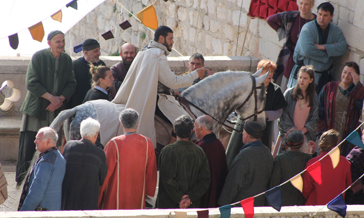 As Taron Egerton suits up to rob the rich to give to the poor on the set of Robin Hood – which started filming in Dubrovnik, Croatia yesterday – a number of photos have emerged from the set showing some of the cast, including Egerton, in a jovial mood.