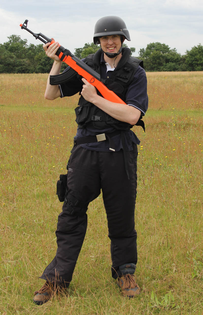 Now I use to do a fair bit of air rifle shooting back when I was at school as every Monday evening was air rifle club so I had a fair bit of pressure on my shoulders to show that 3 years of shooting had paid off! Unfortunately it appears my skills had wavered slightly in the last 20 years as I couldn’t hit the target for toffee! I insisted it was because I couldn’t shut but right eye to see down the scope so decided getting some gaffer tape to cover it up was the only way forward! I didn’t need my eye-brows anyway did I?! The gaffer tape did help a little but the main thing achieved was that it made me look like a complete fool! Surely I could do better using an assault rifle…..