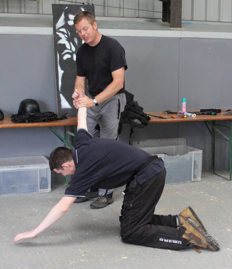 Next it was onto hand-to-hand combat and a rather nice chap called James basically taught us how we could inflict rather a lot of damage on people without breaking into a sweat! James seemed such a nice chap on the outside but if ever I was in a fight, I’d definitely want him on my team! I ended up being used for quite a bit of the demonstration in this part of the day and as I was lying on the ground with a knee in my back and my arm twisted back behind me…. I started wondering what we would be in for on the rest of the day! Ed from MSN and I partnered up to practice this section of the day and I think it’s fair to say he was no match for me (!).