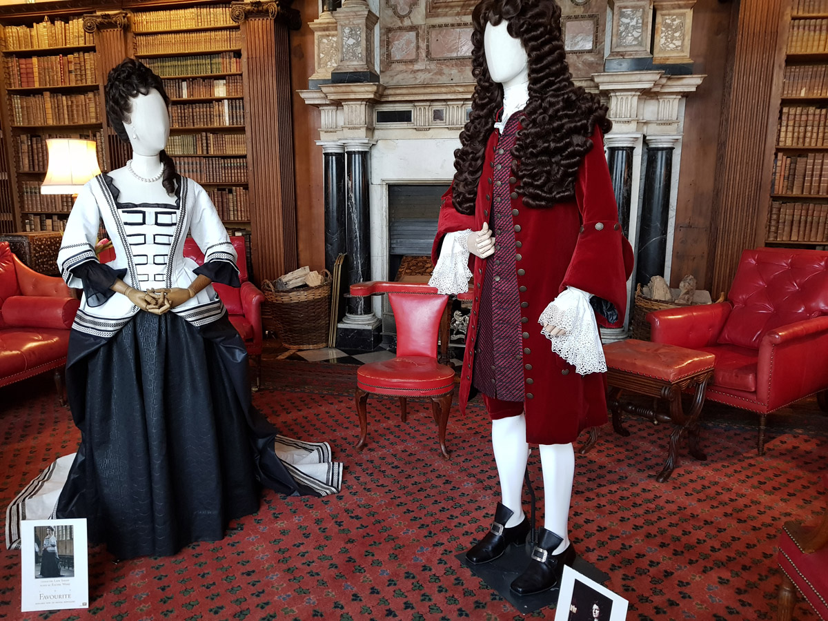 The majority of the film was shot at the historic and. beautiful Hatfield House in Hertfordshire, a location that is no stranger to the big screen. Once the home of the Tudor Queen, Elizabeth 1st, the sprawling estate has seen films such as Elizabeth and its sequel The Golden Age, Sherlock Holmes, Shakespeare in Love, Lara Croft – Tomb Raider, Charlie and the Chocolate Factory and The Avengers played out within its armour laden walls. Now with the home entertainment release of The Favourite pending, the house again hosts a number of costumes from the film in an exhibition open to the public until June 16th.