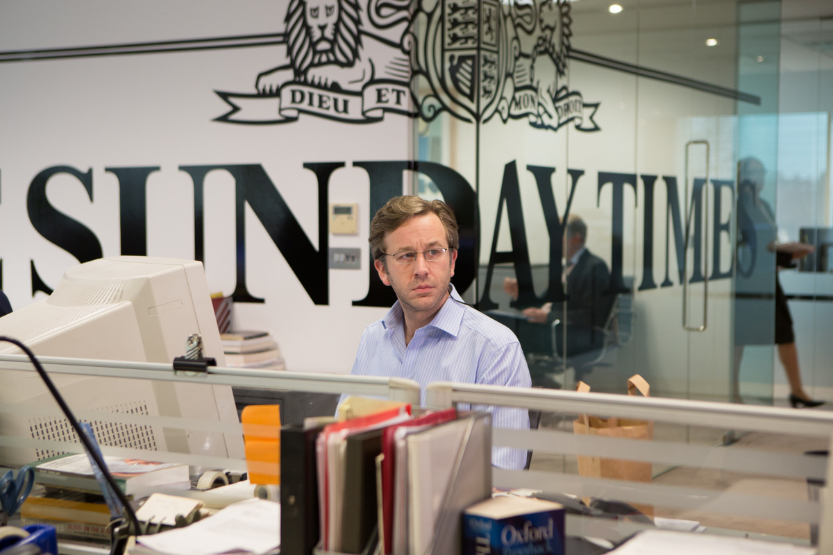 Ben Foster plays Armstrong opposite Chris O’Dowd, Dustin Hoffman, Jesse Plemons and Guillaume Canet in the movie directed by Stephen Frears (The Queen, Philomena). O’Dowd plays David Walsh, the Sunday Times journalist who believed Armstrong was cheating for years (and was dubbed the Little Troll by Armstrong) only to be proved right.