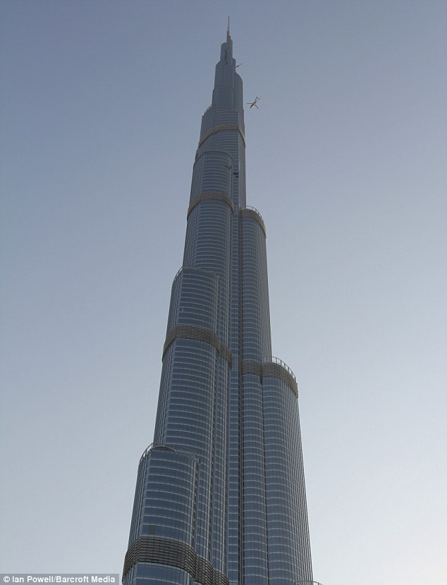 Below you will find images, thanks to the Daily Mail, of Mr. Cruise hanging out of the observation deck 124 floors up and swinging around the side of the ginormous building while a helicopter was flying ten feet away to capture the scene on film. During the scene, Cruise was required to jump over another actor, scaring both crew and crowd members for his upcoming Mission Impossible film, Ghost Protocol.