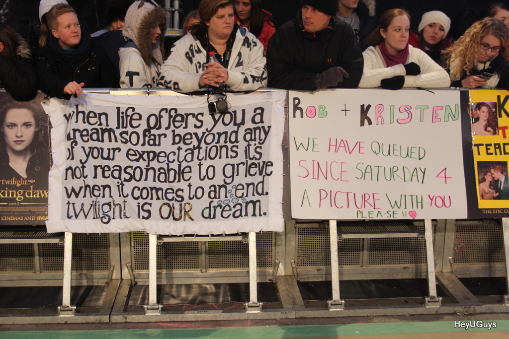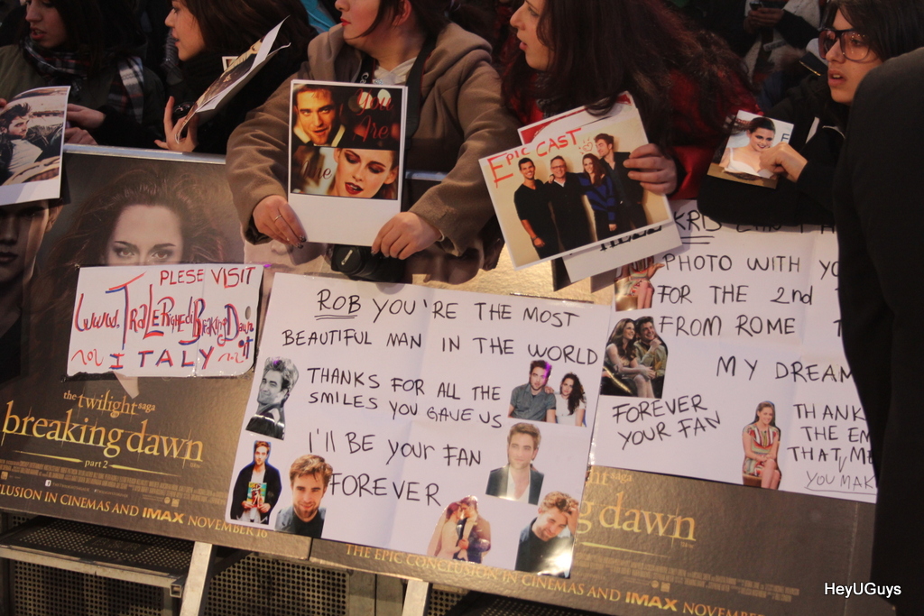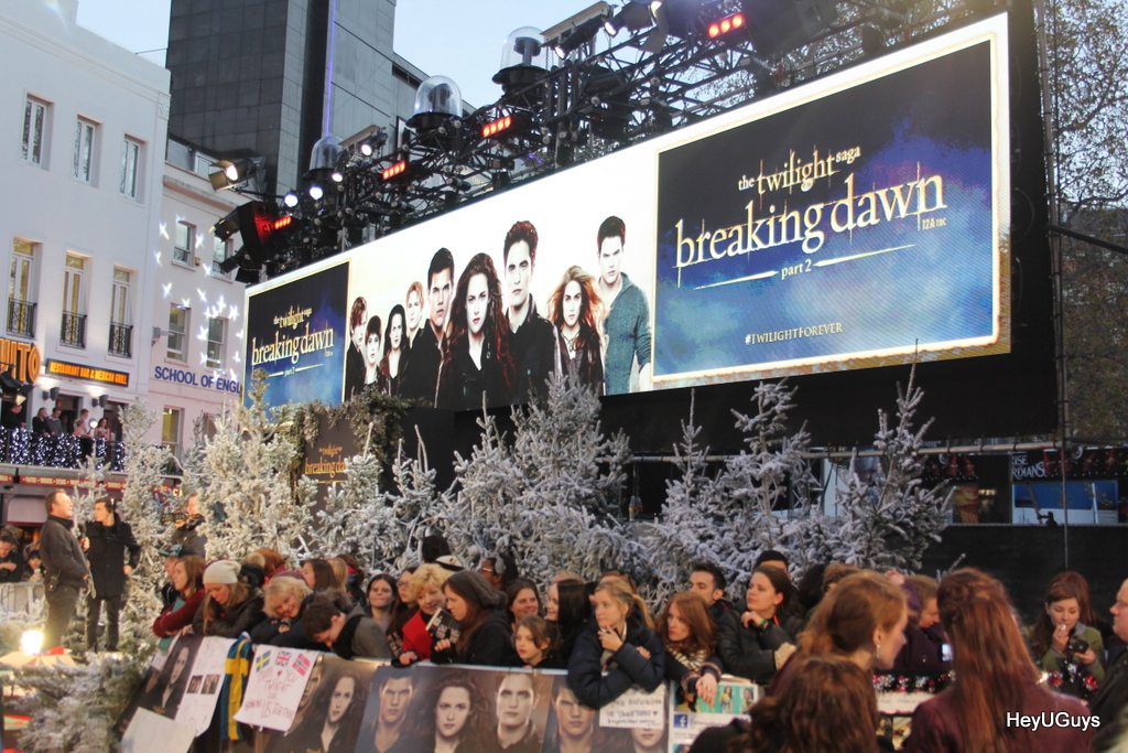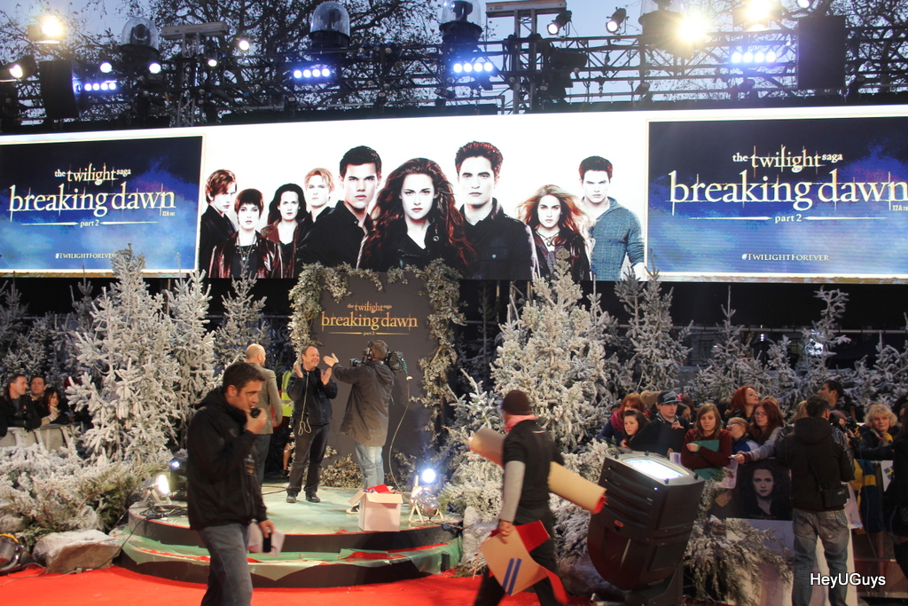 This evening, Laura Hills and I attended the European Premiere of a small movie why you may or may not have heard of of called Twilight Breaking Dawn Part 2! I haven’t seen Leicester Square as full as it was tonight since the penultimate Harry Potter movie! All three of the squares main cinema chains (Empire, Odeon and Vue) were utilised to make this one of the biggest premieres that the square has ever seen and both Laura and I were speechless at the thousands of adoring fans! As I arrived, I could see hoards of girls running from all directions for a glimpse of their movie heroes and those patient enough and lucky enough to be in the right spot were in for a right treat as Kristen Stewart, Robert Pattinson and Taylor Lautner all walked the carpet, signing and taking photos with as many of their fans as they possibly could while being flanked by multitudes of security personnel! I have honestly never seen anything like it!