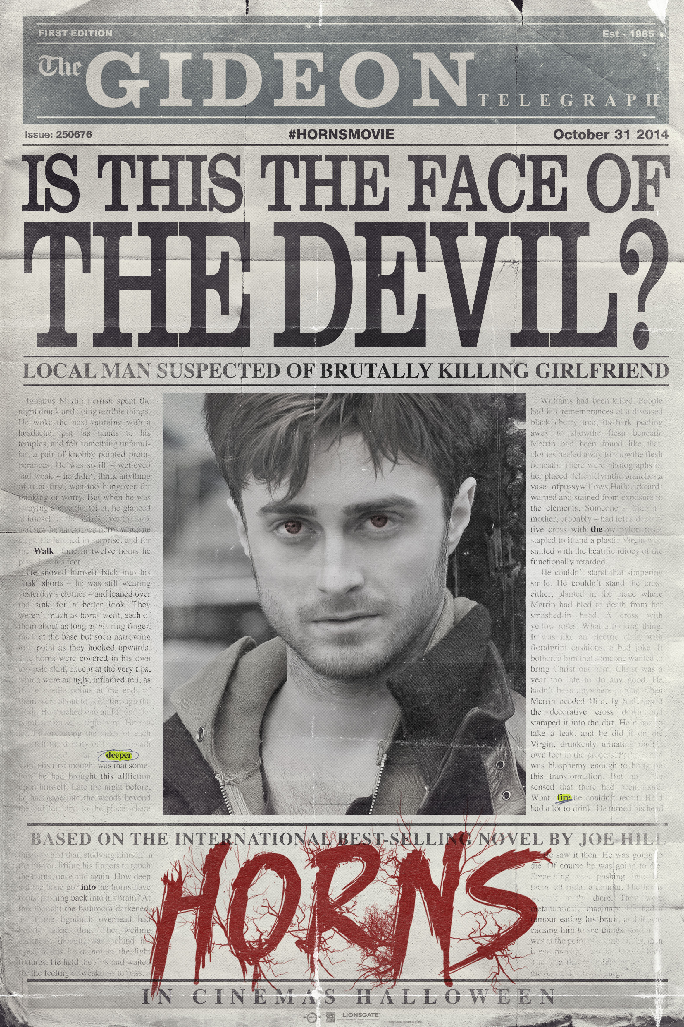 We had a similar poster a week or so ago and unfortunately it was disappeared but now we have a fresh look at the poster for Daniel Radcliffe in his new movie Horns. Juno Temple stars opposite Radcliffe as his murdered girlfriend, joined by Max Minghella, Kelli Garner, David Morse and Heather Graham.