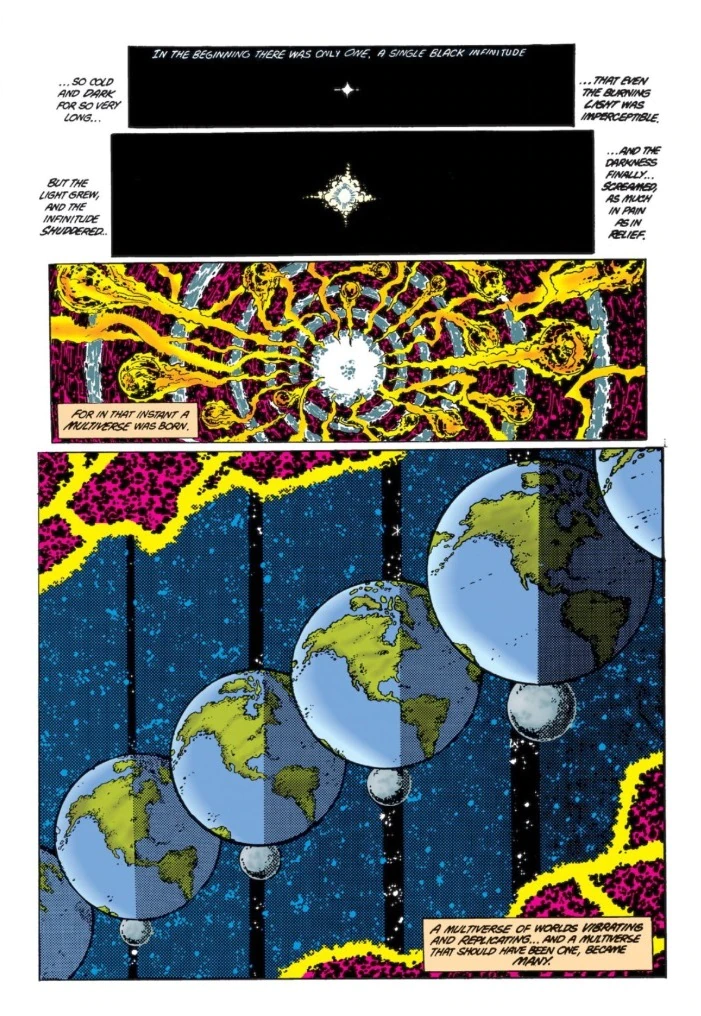 The history of DC’s Multiverse is long and complex, featuring humble beginnings, tangled webs of various crises, doom, destruction and rebirth. The comic page below details its first moments as it winked into existence, but for more information, check out the comprehensive article over at DC.com. A more inviting entrance to the rabbit hole you will not find outside of Wonderland.