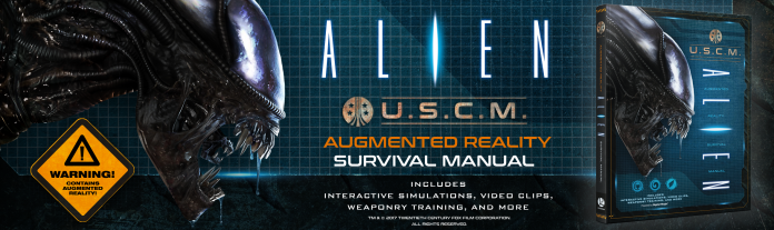A book like no other. An experience you’ll never forget. The Alien movie franchise has been shocking audiences for more than 35 years, and the series is set to continue into the future, which is where this book comes from. This special interactive edition has been beamed back to us from the future reality witnessed in the movies. Alien: Augmented Reality Survival Manual was written for new recruits of the U.S. Colonial Marines to impart knowledge of identification and combat of Xenomorphs. Protecting yourself and mankind against this significant and ever-growing threat is the goal. Study a Xenomorph autopsy, witness an Alien egg hatch in real-time, and see the deadly attacks of a face-hugger first-hand. For new recruits, you will also get to see what the life of a USCM pilot is like, and witness ‘on the scene’ footage of the marines in action, in the form of movie excerpts. Whether it’s the first day of your USCM training, or you’re a hardened marine veteran, Alien: Augmented Reality Survival Manual is vital to shore up your knowledge of the Xenomorph threat, and ensure your prolonged survival as you travel the stars to protect the United Americas Colonies and interests.