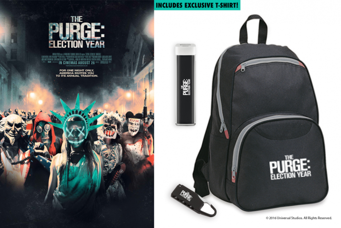 To mark the release of The Purge: Election Year on 26th August, we’ve been given 5 merchandise packs including a t-shirt, a rucksack, a power bank and a lock to give away.