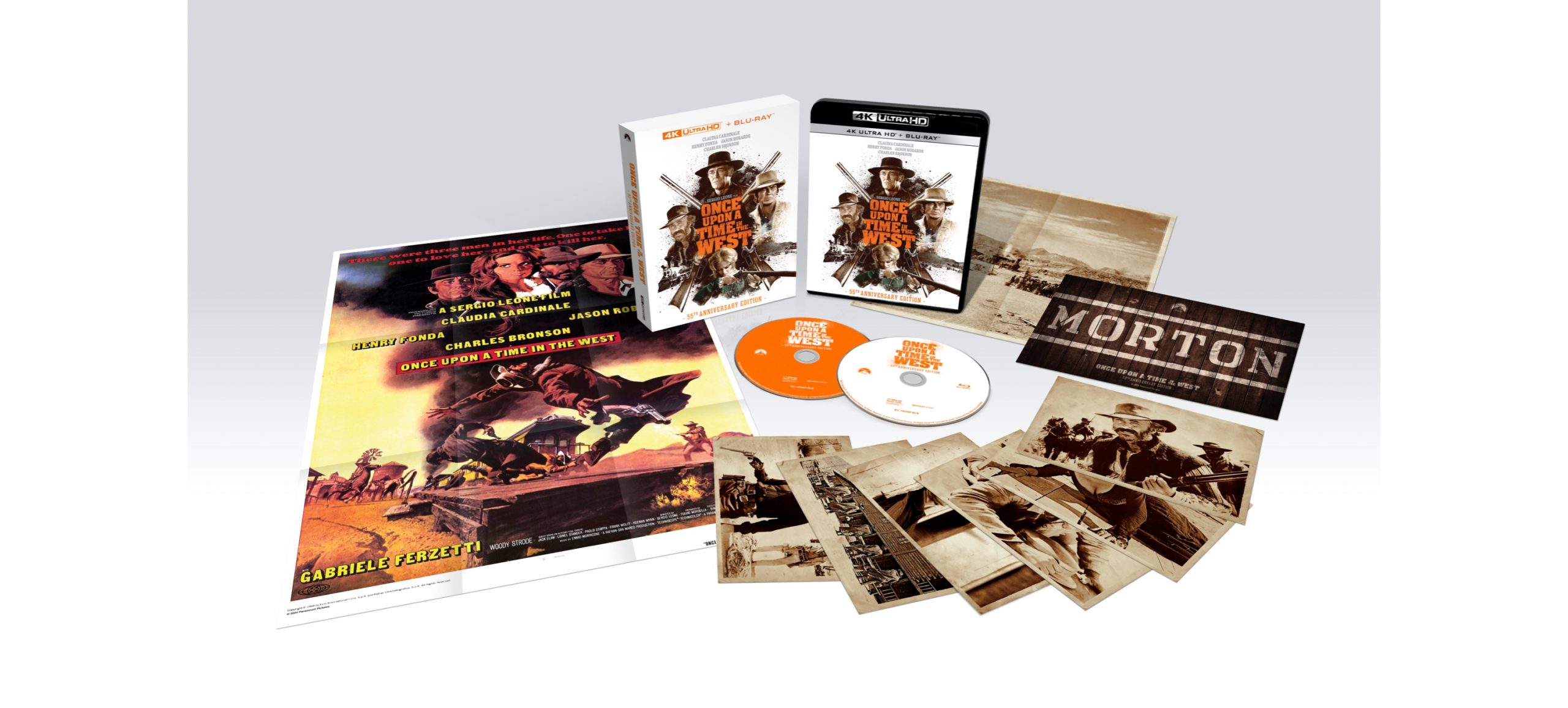 A must-own for every cinephile’s collection, ONCE UPON A TIME IN THE WEST will be presented in a Limited-Edition 4K Ultra HD and Blu-ray set that includes both new and legacy bonus content. The Collector’s Edition is housed in a rigid slipcase and includes a theatrical poster, six art cards, a collectable MORTON train display sign, and a vintage fold out photographic print.