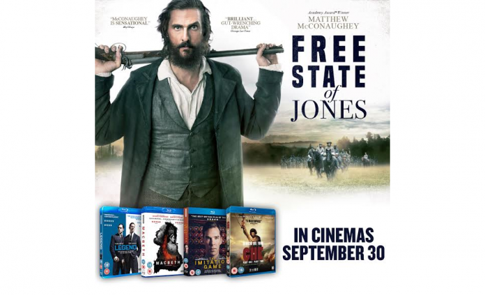 To celebrate the release of Free State of Jones in cinemas September 30, we’ve got three brilliant prize bundles to give away, including a Free State of Jones poster and Blu-ray bundle containing Legend, Macbeth, The Imitation Game and Ché.
