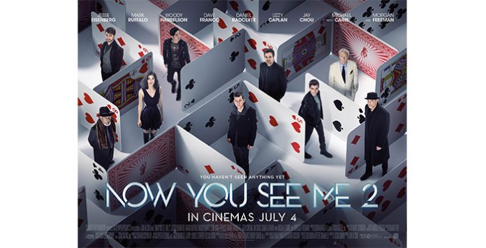 THE FOUR HORSEMEN return for their second mind-bending adventure, elevating the limits of stage illusion to new heights and taking them around the globe. One year after outwitting the FBI and winning the public’s adulation with their Robin-Hood-style magic spectacles, the illusionists resurface for a comeback performance. When the Horsemen are threatened into pulling off their most impossible heist yet, their only hope is to perform one last unprecedented stunt to clear their names and reveal the mastermind behind it all. Now You See Me 2 is directed by Jon M. Chu.