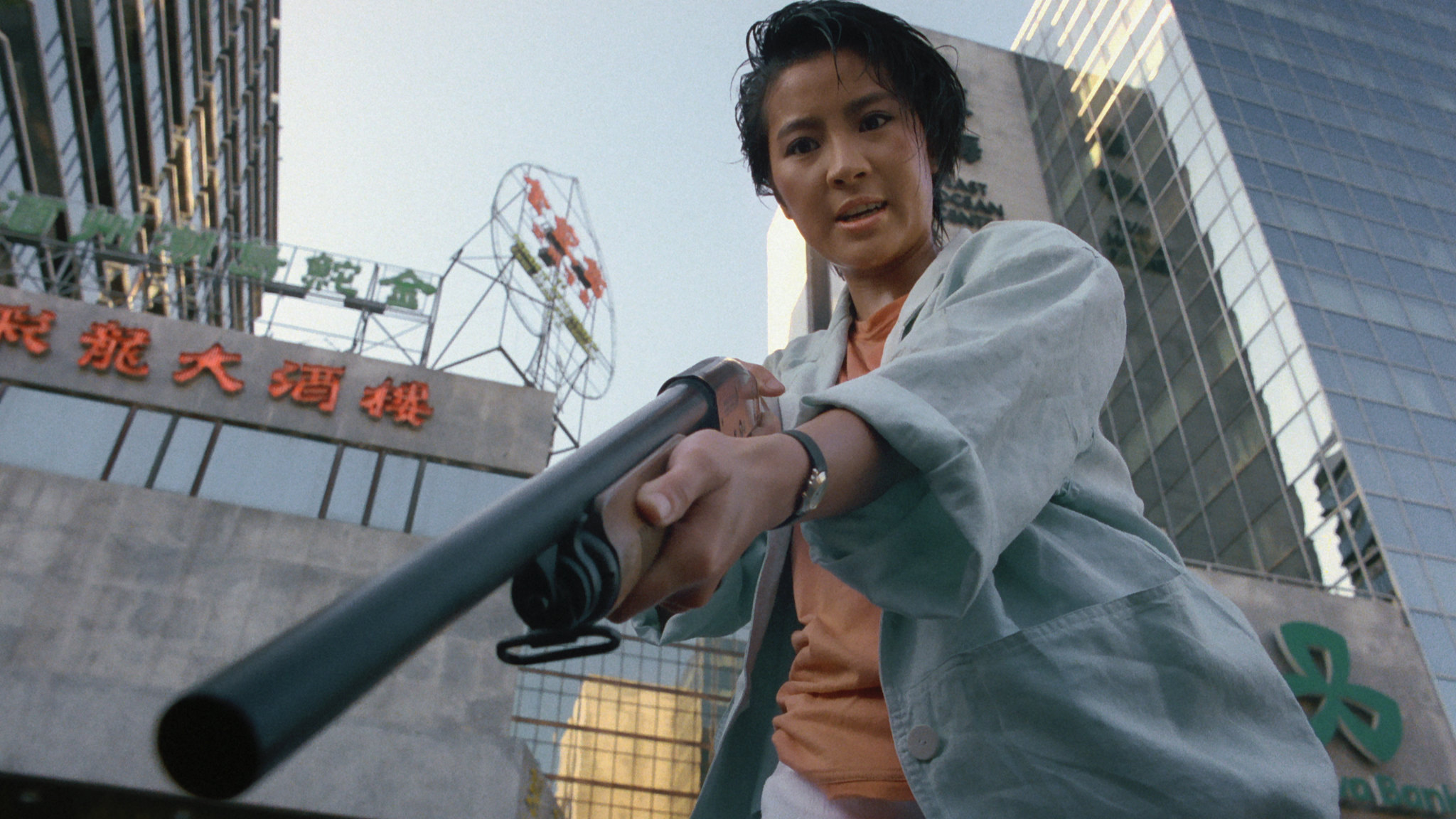 The fight is a masterclass in building spectacular moments into a cohesive setpiece, whether it’s Rothrock’s trademark scorpion kick to Dick Wei’s head or Yeoh falling backwards over a banister, through a sheet of glass, gabbing two bad guys by their legs and throwing them through and to the ground, there are moments here that are made to be rewound and played in slow motion. The two actresses also complement each other brilliantly: Rothrock the harder hitting, Yeoh the more graceful. They start off with an iconic, much GIF-ed, gimme five into a ready stance, and take on their own fights, before combining their styles to finally take down their foes. It’s a spectacular sequence which also shows off the mastery of action choreography and the secret weapon status of editor Peter Cheung who, from Fist of Fury up to Jackie Chan’s Who Am I?, probably edited your favourite martial arts film.